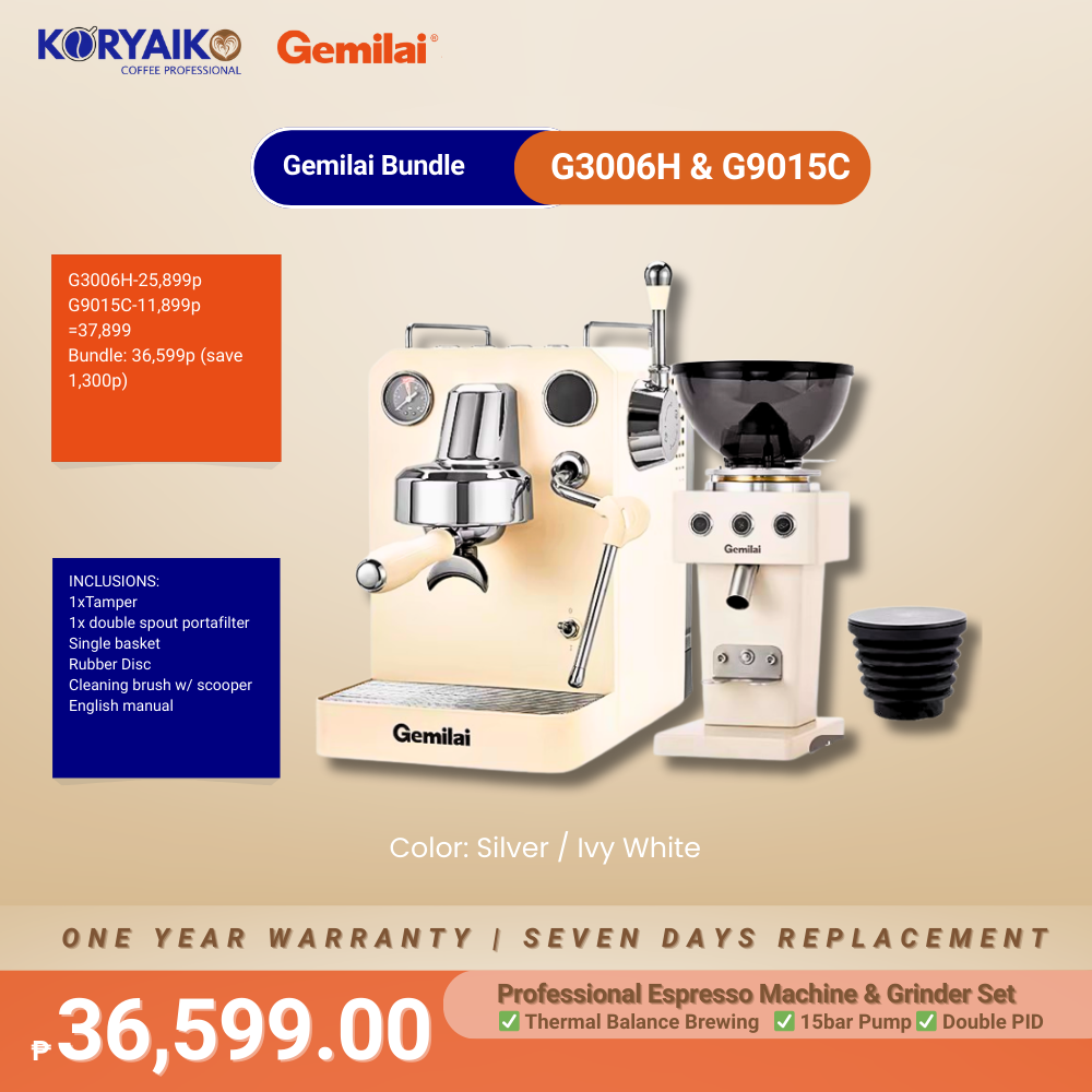 The Gemilai G3006H & G9015C Bundle is a professional home espresso solution officially distributed by Koryaiko Philippines. Designed for coffee enthusiasts seeking consistent extraction, precise temperature control, and freshly ground coffee, this bundle delivers café-quality results in a compact and elegant setup.