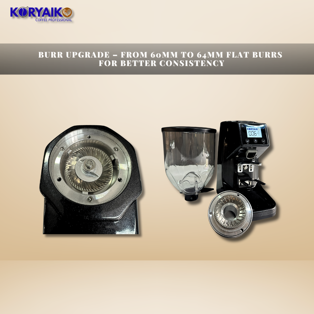 Professional Flat Burrs – Equipped with 64mm stainless steel flat burrs for consistent grinding.