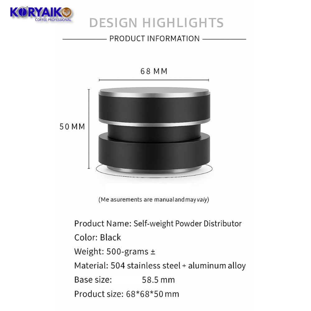 Koryaiko 58–58.5mm Gravity Coffee Distributor | Espresso Leveler Tool | Stainless Steel Coffee Powder Distributor