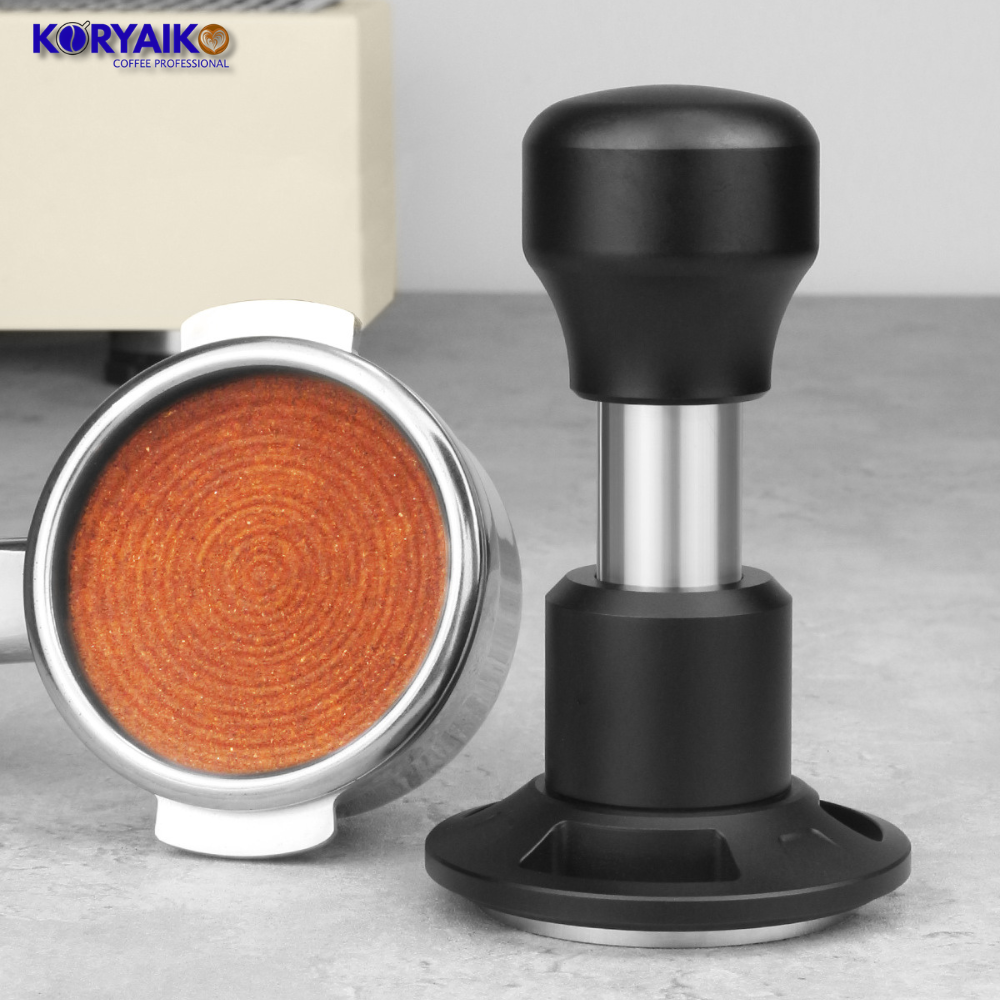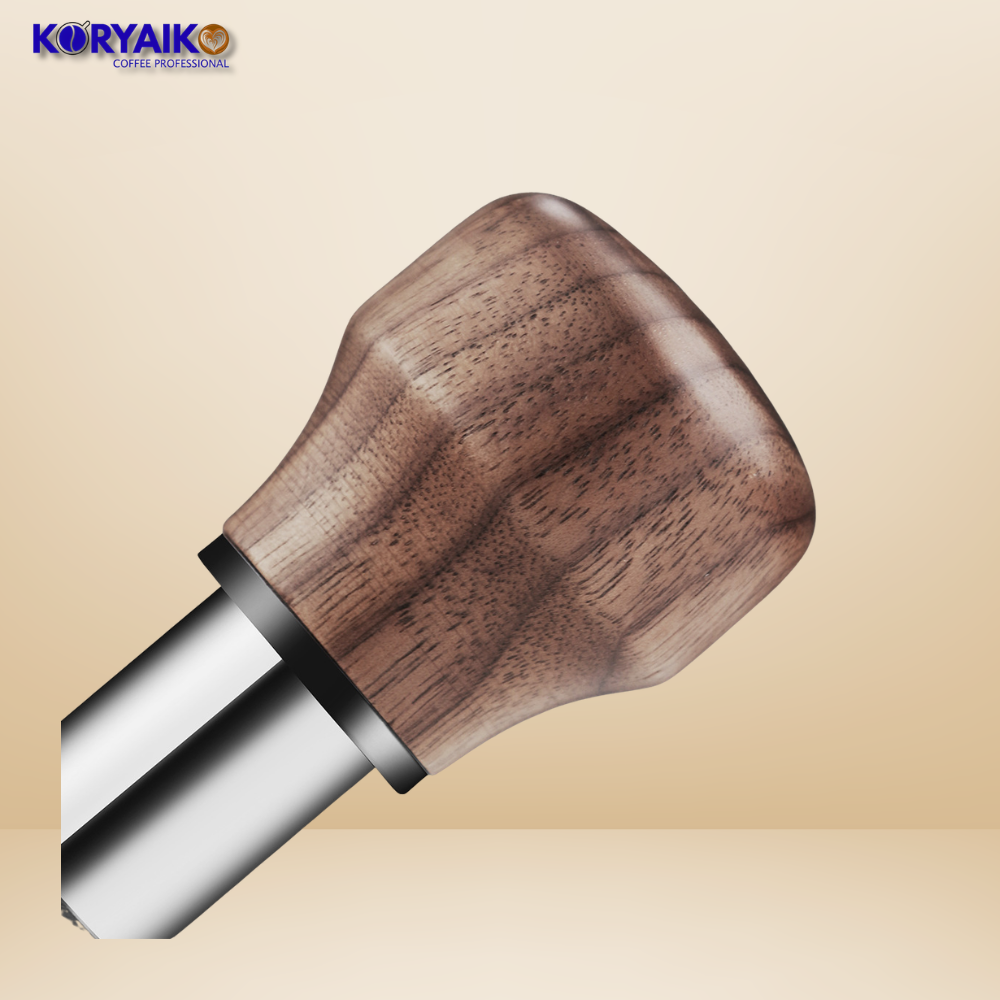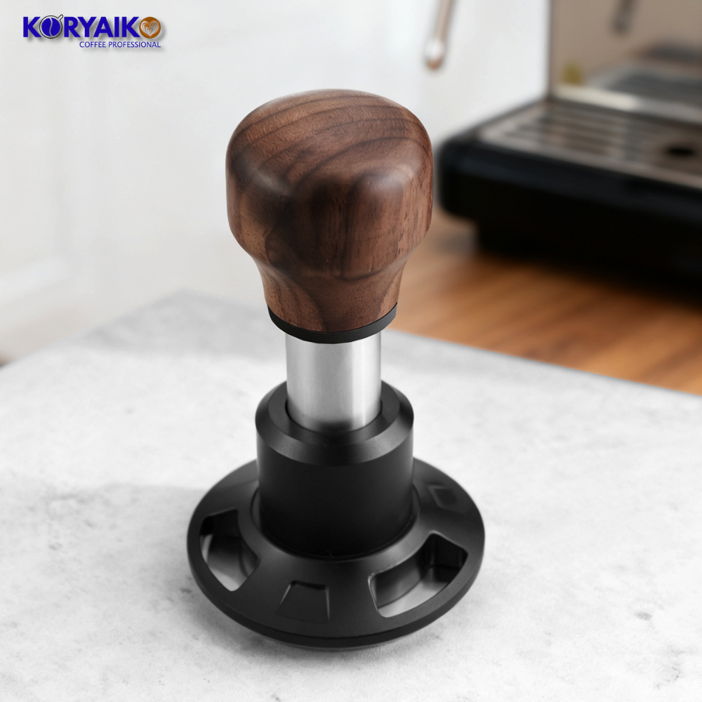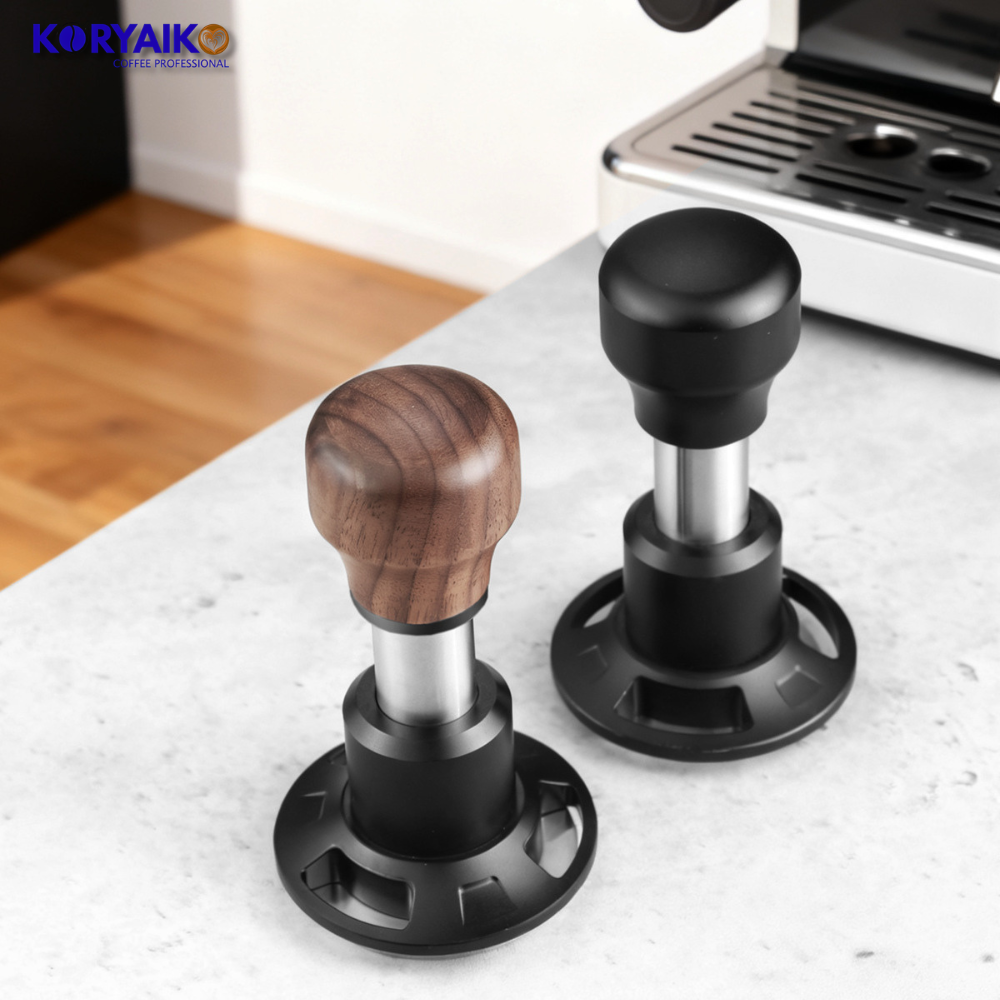The Koryaiko 58.5mm Precision Tamper features a screw base design and is available in wood and black finishes, combining performance, durability, and clean aesthetics for any professional espresso setup.